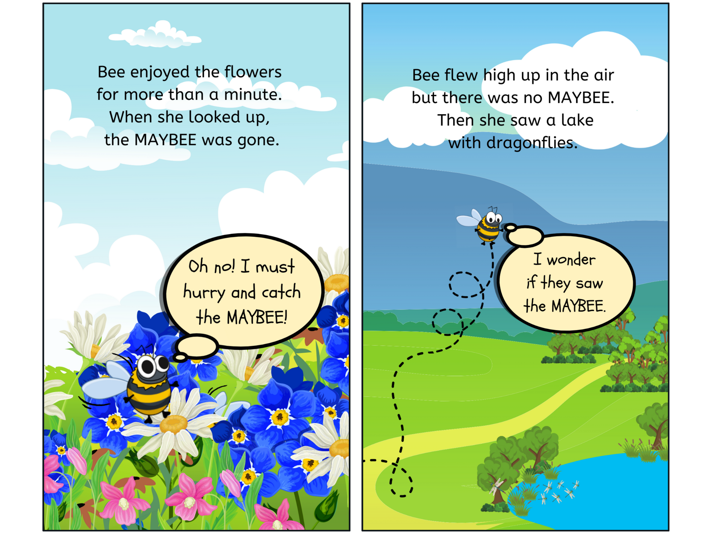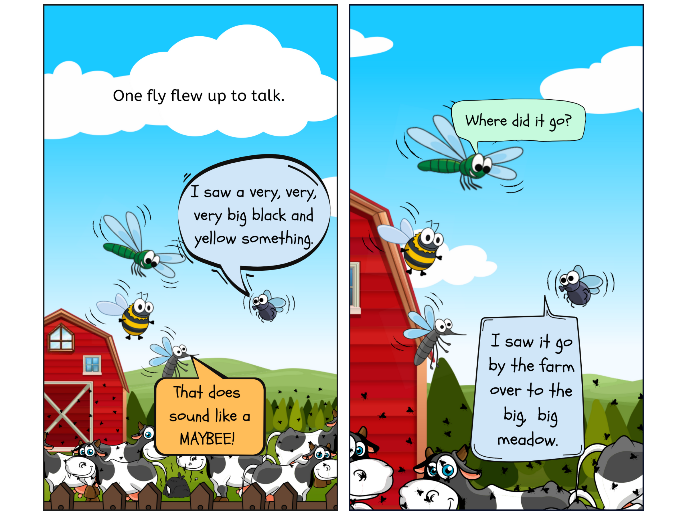 Bee is determined to find the MAYBEE. But with every clue she gets—from dragonflies, flies, and farmyard animals—the answer seems to slip further away.